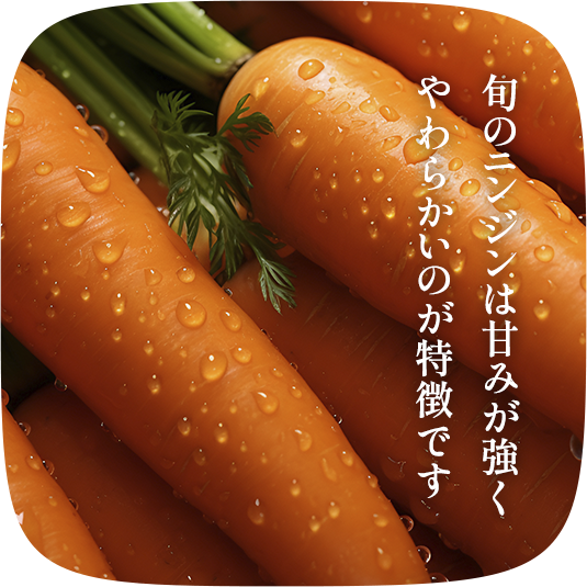 一般的に出回っているニンジンの旬は9~12月ごろ。旬のニンジンは寒さで凍るのを防ぐために、糖を蓄えるとされています。そのため旬のニンジンは甘みが強いのが特徴です。